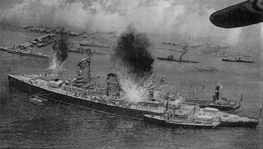 The crew of one Blenheim attacked at such a low level that the blast of their own bomb on the warship destroyed the RAF aircraft.