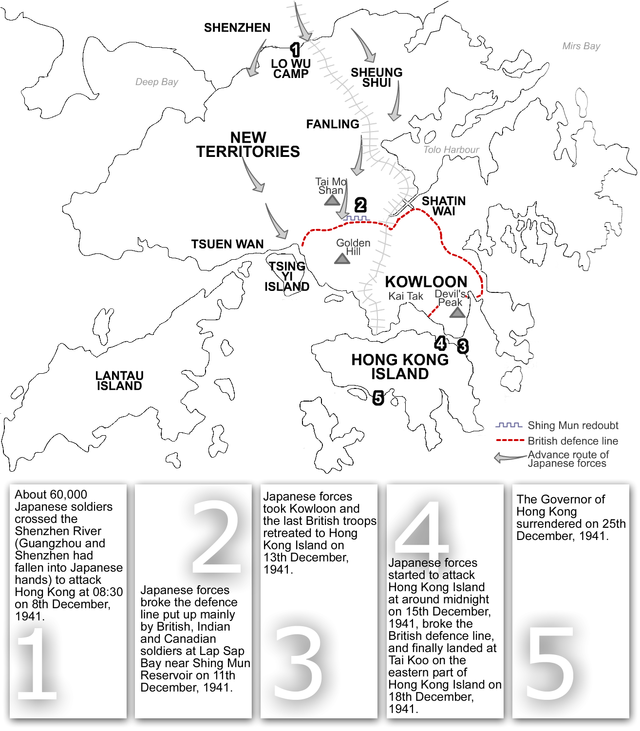 At 2am (Hong Kong time) on Monday 8th December, Pearl Harbor was attacked. At 4.45am coded instructions on Tokyo radio informed listeners Japan was at war with Britain and the USA. In Hong Kong, the Governor was notified and troops were told to prepare to retreat from forward positions on the border with China. Later they were told why.
